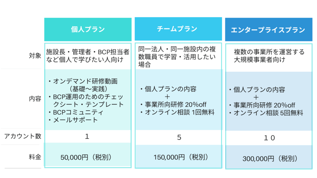 サービス種別、事業所規模など、それぞれの事業所にあったアプローチでBCP策定をサポート